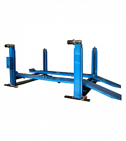 Электромеханический четырехстоечный подъемник ПЛ-4 по ТЗ. Подъем всех автомобилей общей снаряжённой массой до 4-х тонн. Имеет 4 стойки. Каждая пара стоек одноприводная, с передачей крутящего момента на вторую стойку цепью. Привод ходового винта от червячного мотор-редуктора. Электронная синхронизация хода платформ. Устанавливается на напольные рамы, входящие в комплект поставки. По отдельному заказу комплектуется тележкой ТД-1 с домкраторм или подъемником ПНП-3 для подъема передней или задней оси автомобиля. Конструкция подъемника предусматривает возможность установки стенда регулировки развала-схождения передних колес автомобилей.